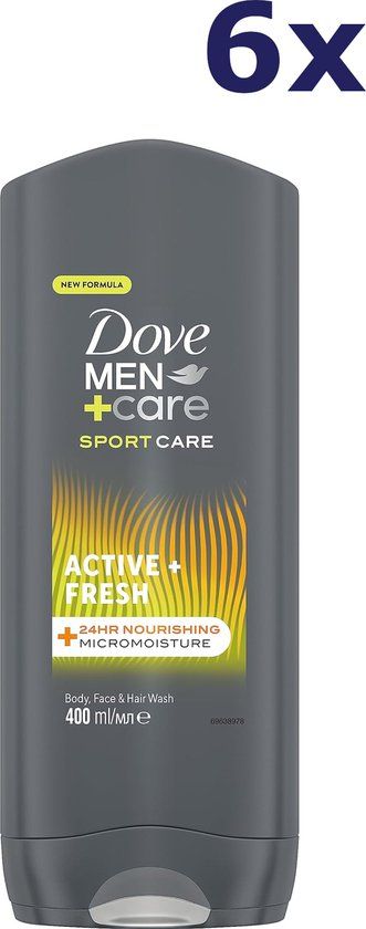 Dove Men + Care Sport Care Active Fresh Body, Face & Hair Wash - 6 x 400 ml