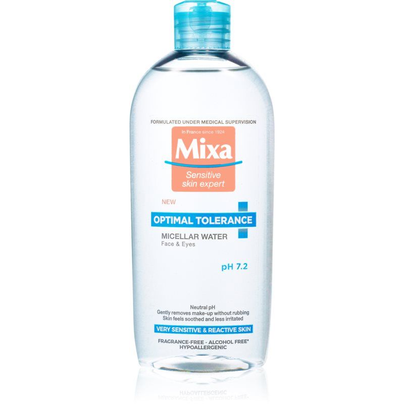 MIXA Optimal Tolerance, 400 ml, Micellair water voor Vrouwen , Het micellaire water MIXA Optimal Tolerance zorgt voor een grondige afschminking binnen enkele minuten. Tegelijkertijd ontdoet het je huid van het dagelijks vuil en dode huidcellen. Kenmerken: Heeft verfrissende en rustgevende effecten reinigt de poriën in de diepte houdt de huid in balans kan ook worden gebruikt voor een gevoelige huid Hoe te gebruiken: Breng een voldoende hoeveelheid van het product aan op de wattenschijfje en maak de huid schoon door het product lichtjes uit te smeren.