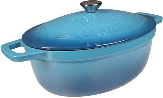 VeoHome Ovale Braadpan en Stoofpot 6L 32cm - Blauw Geëmailleerd Gietijzer - Gietijzeren pannen