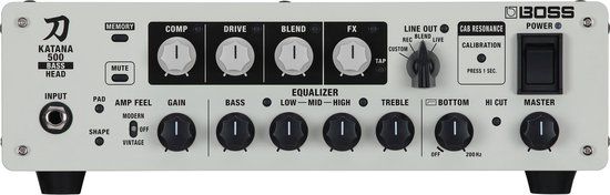De Boss Katana 500 is een krachtige 500W bastop. Deze top is compact en verfijnt de Katana basformule met een groot aantal geavanceerde functies. Het voorversterkercircuit en de enorme 500-watt klasse D vermogenssectie van deze head geven je een heldere, volle basis die je kunt tweaken met de Katana-500's flexibele 4-bands EQ, low-end shaping Bottom knop en 3-positie Hi Cut schakelaar.