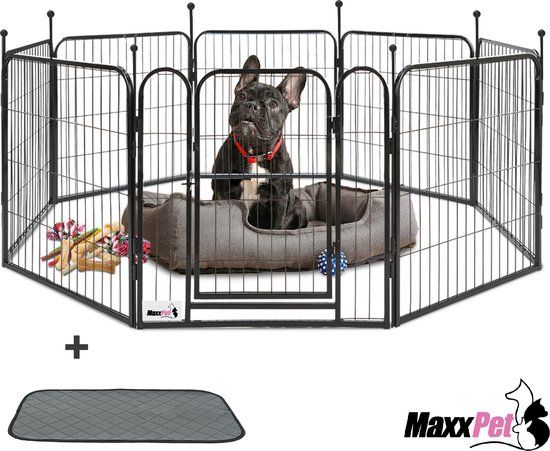 MaxxPet Puppyren - Hondenbench - Hondenren - Hondenkennel - Staal - 120 x 60cm - Incl. Drinkbakje + Plasmat - Grote hondenrennen