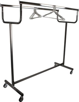 Het garderoberek is voorzien van twee verchroomde stangen met een afstand ertussen van 55 cm. Ook zijn beide stangen in de breedte verstelbaar, waardoor u er nóg meer kleding op kunt hangen. Het rek is geschikt voor professioneel en industrieel gebruik door het hoogwaardige materiaal. De vier stevige zwenkwielen zorgen ervoor dat u dit garderoberek makkelijk kunt vervoeren binnen of buiten uw bedrijf. U kunt dit garderoberek gebruiken in uw stomerij, wasserij of winkel. De standaard breedte van dit kledingrek is 150 cm en is uitschuifbaar tot 210 cm. De hoogte van dit kledingrek is 150 cm.