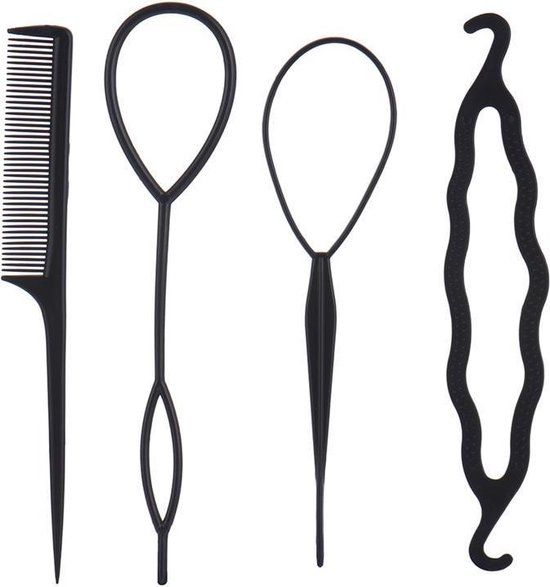 Haarstyling hulpstukken - knot maker - topsy tail - invlechten - 4 stuks - Zwart - Plastic - Haargel, -lak en -mousse