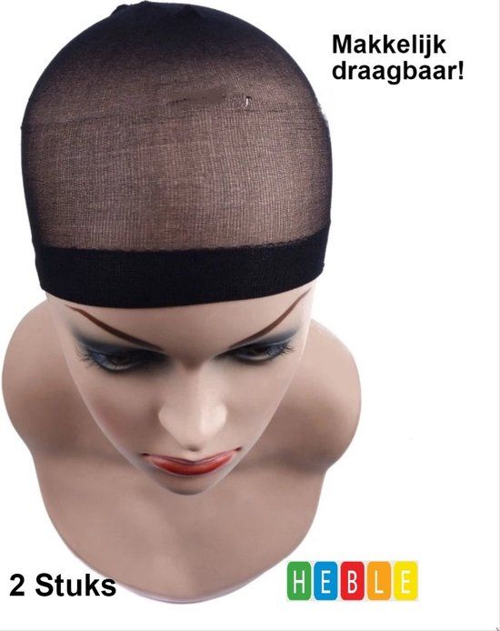 2 stuks zwarte netstof mesh pruik haarnetjes - rekbare elastische haarnet voor nephaar - weave wig cap - unisex - van Heble®