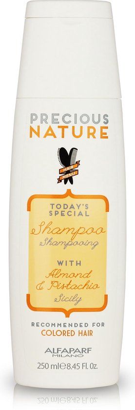 Shampoo die gekleurd haar op milde wijze reinigt en kleur beschermt! Vol trots ben je uit de kapsalon gelopen. Je hebt net je haar laten kleuren en het ziet er weer geweldig uit! Maar na een paar wasbeurten vervaagt de kleur. Heel frustrerend, toch? Met de Alfaparf Precious Nature Silicy Shampoo wordt je haar op dusdanig milde wijze gewassen, dat kleurvervaging wordt geminimaliseerd en je nog lang van je nieuwe haarkleur kunt genieten! Voordelen van Alfaparf Sicily Shampoo * Reinigt je haar op milde wijze, zodat je nieuwe haarkleur gewaarborgd blijft! * Door Pistache Extract (Afkomstig uit Sicilië, 100% Natuurlijk!) worden beschermende stoffen en anti-oxidant-achtige stoffen in je haar aangebracht. * Door Amandel Olie (Afkomstig uit Sicilië, 100% Natuurlijk!) wordt elke afzonderlijke haarschacht beschermt tegen invloeden van buitenaf. Ook zo blijft je haarkleur gewaarborgd. * Het product bevat geen sulfaten, parabenen, paraffine, mineraaloliën en synthetische kleuren. * Het product is vrij van planten en geuren die bekend staan om een mogelijke allergische werking. Bestel nu de Alfaparf Sicily Shampoo uit de Precious Nature lijn, dan zorgen wij dat deze snel bij je thuis komt! Gebruiksaanwijzing * Zorg dat je haar nat is. * Breng de hoeveelheid van een muntje aan op je hand. * Verspreid de Alfaparf Sicily Shampoo gelijkmatig door je haar. * Masseer voorzichtig. * Spoel vervolgens weer uit. * Gebruik voor intensieve verzorging het Alfaparf Sicily Mask (http://www./product/alfaparf-precious-nature-color-protection-mask).