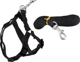 LOUZIR Verstelbaar Kattentuigje met looplijn - Kattenharnas - Hondentuigje - Zwart - Halsbanden en stropdassen voor huisdieren