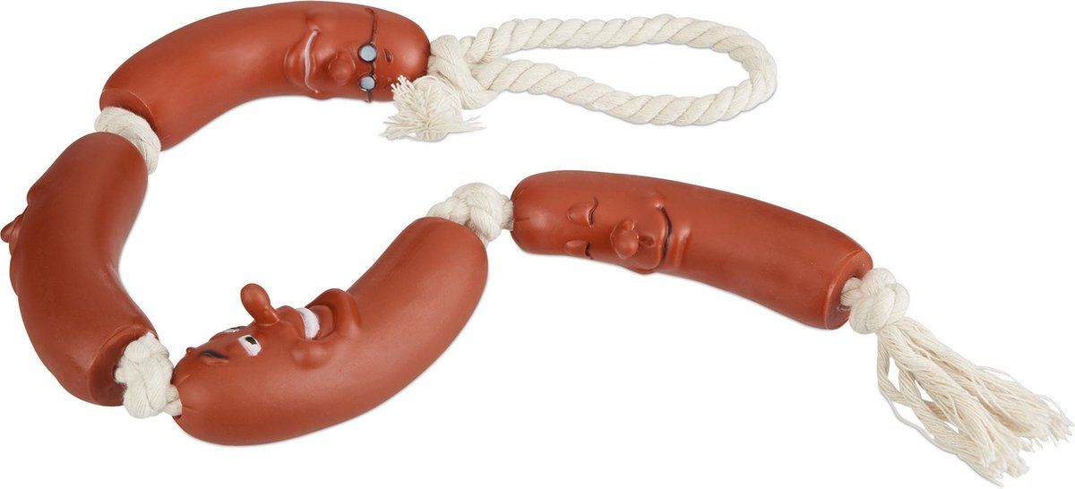 Relaxdays Hondenspeelgoed - Worstjes + Touw - Kauwspeelgoed Honden - Trekspeelgoed - Bruin/Crème