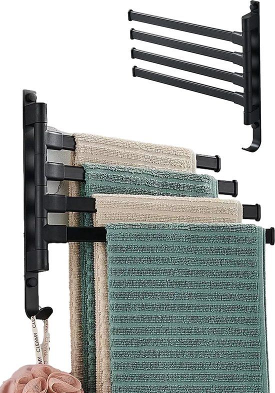 Tolussa Handdoekrek Badkamer Zwart - 30 CM - Draaibaar - 4 Handdoeken - Modern - Handdoekhouders
