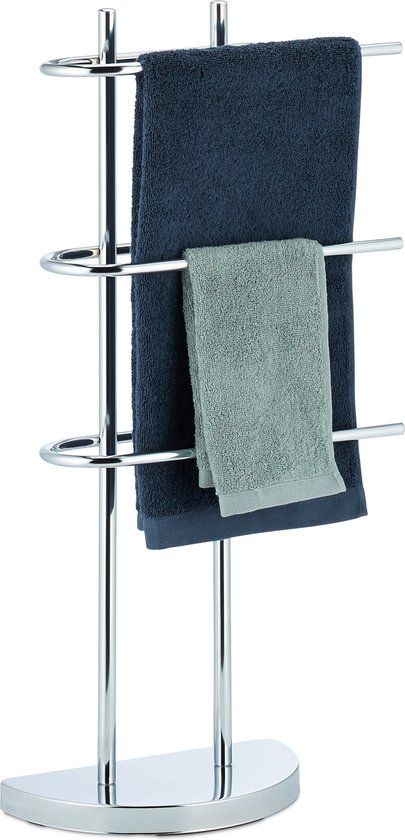Handdoekhouder - 3-armig - Vrijstaand - Metaal - Zilver - Handdoekhouders