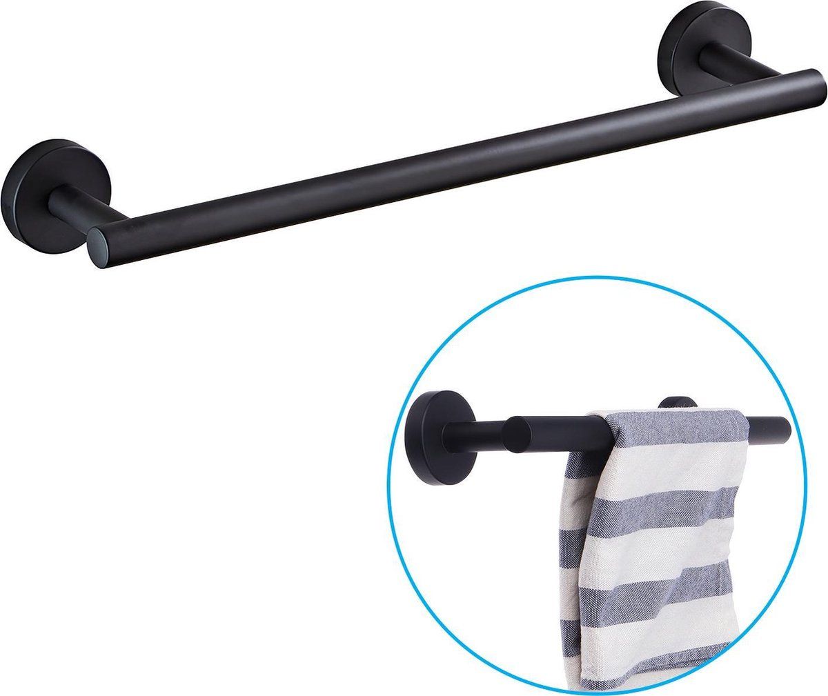 Sanics Handdoekrek Zwart 40 CM - Handdoekstang - RVS - Handdoekrekken