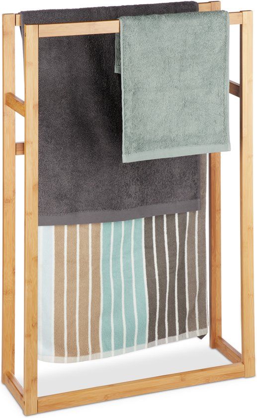 Relaxdays handdoekenrek bamboe - vrijstaand - 2 armen - handdoekenhouder - handdoekdrager - Handdoekrekken