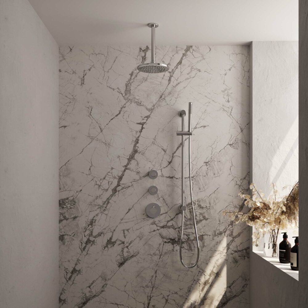 Bekijk productBrauer Chrome Carving thermostatische inbouw regendoucheset 20cm plafondarm met 20cm ronde hoofddouche 1 stand staafhanddouche 150cm gladde doucheslang met glijstang en handdouchehouder Chroom 5-CE-113 - Handdouchekoppen