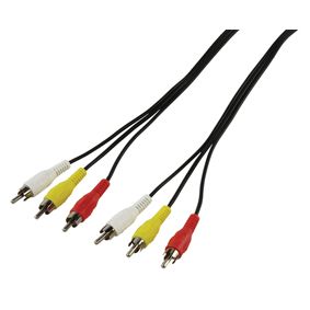 3 Phono plug to 3 Phono plug lead with whte yellow & red connectors. Lead length 5m.