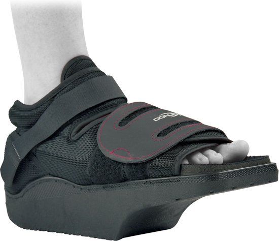 Post operatieve schoen met een klittenband sluiting. De schoen heeft een dempende zool waarbij de voorvoet vrij ligt voor optimale afwikkeling zonder druk op de voorvoet. Wordt gedragen na alle soorten voet operaties. Verkrijgbaar in verschillende maten. MAAT SCHOENMAAT XS <37 S 37 - 39 S/M 39-43 L 43 - 45 M/L > 45