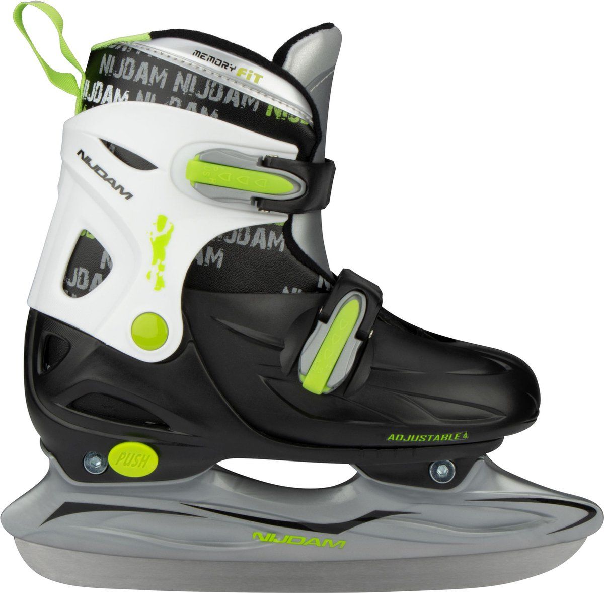 Nijdam Junior IJshockeyschaats Junior Verstelbaar - Hardboot - Zwart/Wit/Groen - 30-33