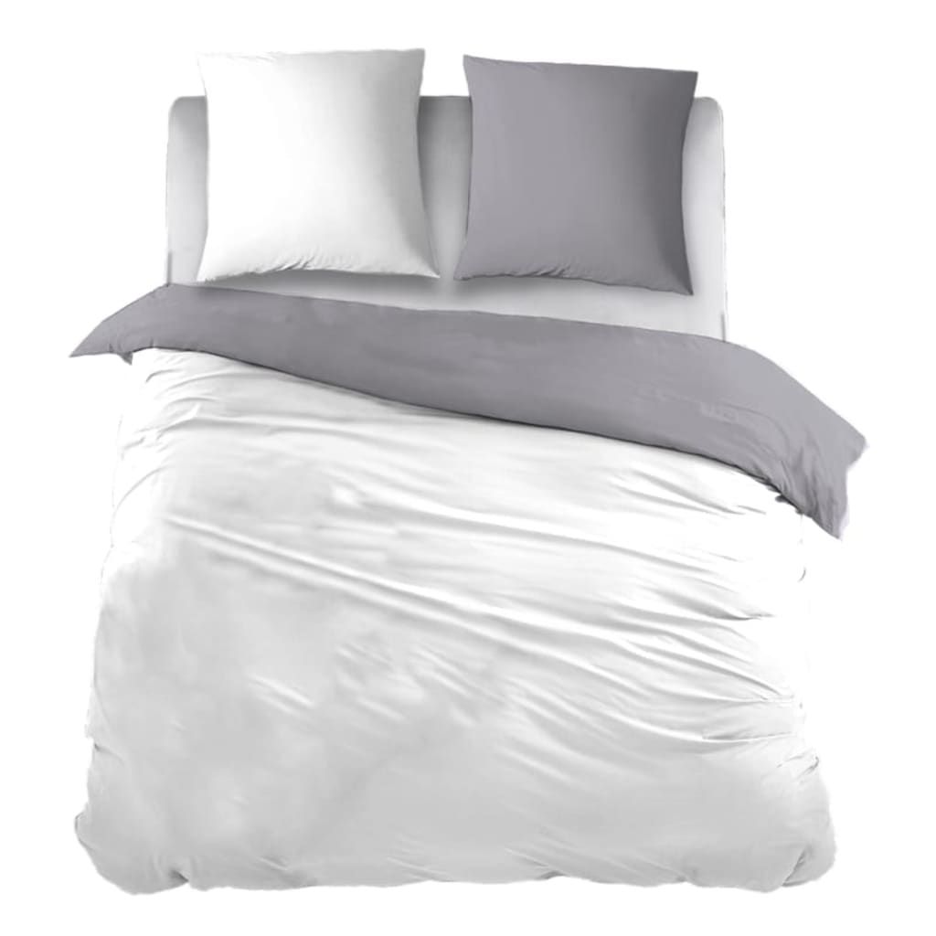 Snoozing Two Tone dekbedovertrek - Lits-jumeaux - wit/grijs - 100% katoen - Hoezen voor donsdekens