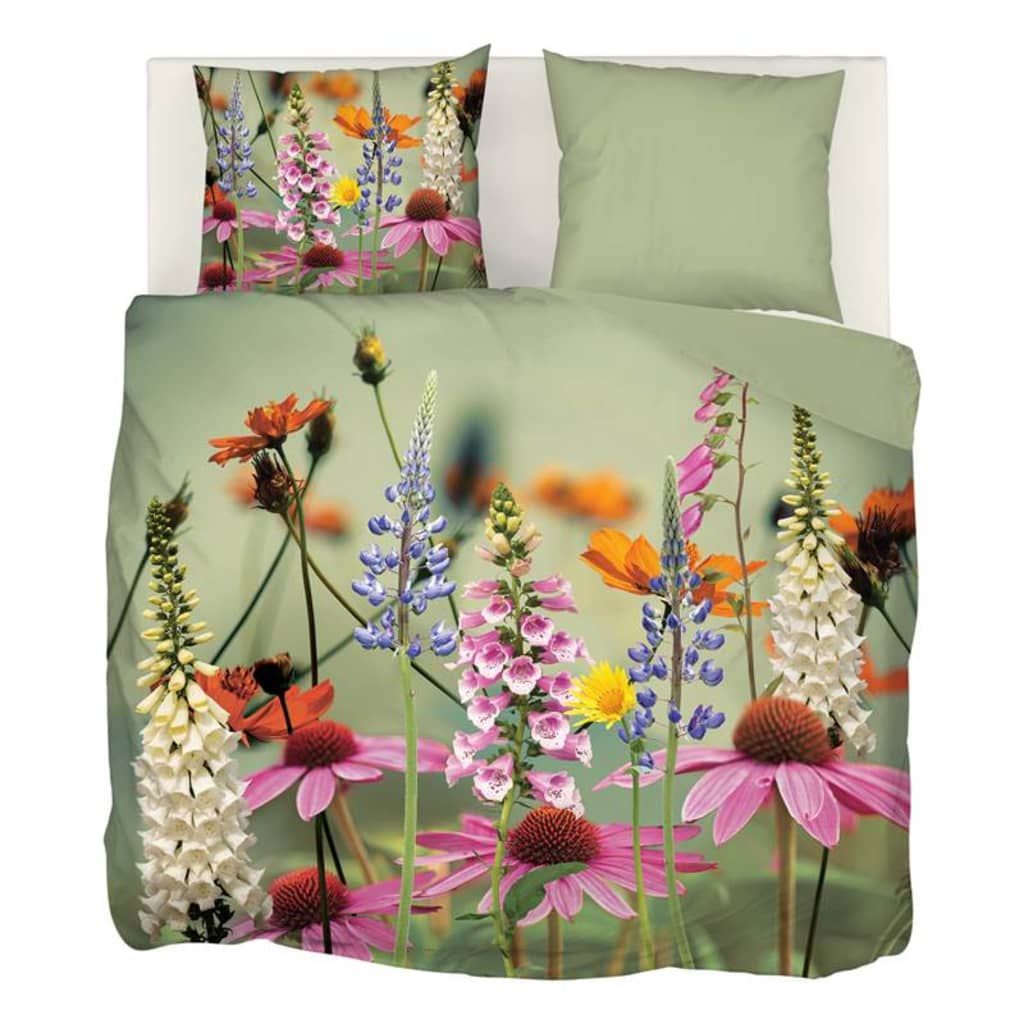 Snoozing Foxglove dekbedovertrek - 100% katoen-satijn - Lits-jumeaux - groen