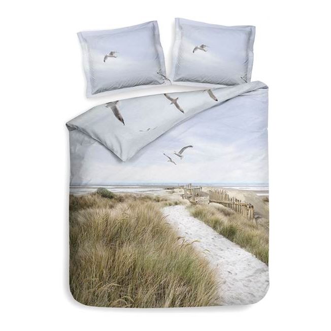 Een heerlijke wandeling in de duinen. Met het Ravi dekbedovertrek van Heckett & Lane wordt het bijna werkelijkheid. Het dessin laat een prachtig pad in de duinen zien dat uitkijkt op de kust. In de lucht en op het kussensloop zie je meeuwen vliegen. Wanneer je het dubbelzijdige overtrek omdraait zie je een prachtige blauwe lucht waarin meerdere meeuwen rondvliegen. Droom weg en waan jezelf in de duinen!