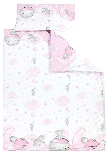 TupTam Dekbedovertrek voor Kinderen 2-delig, Maan met olifant / Roze, 135x100 cm - Hoezen voor donsdekens