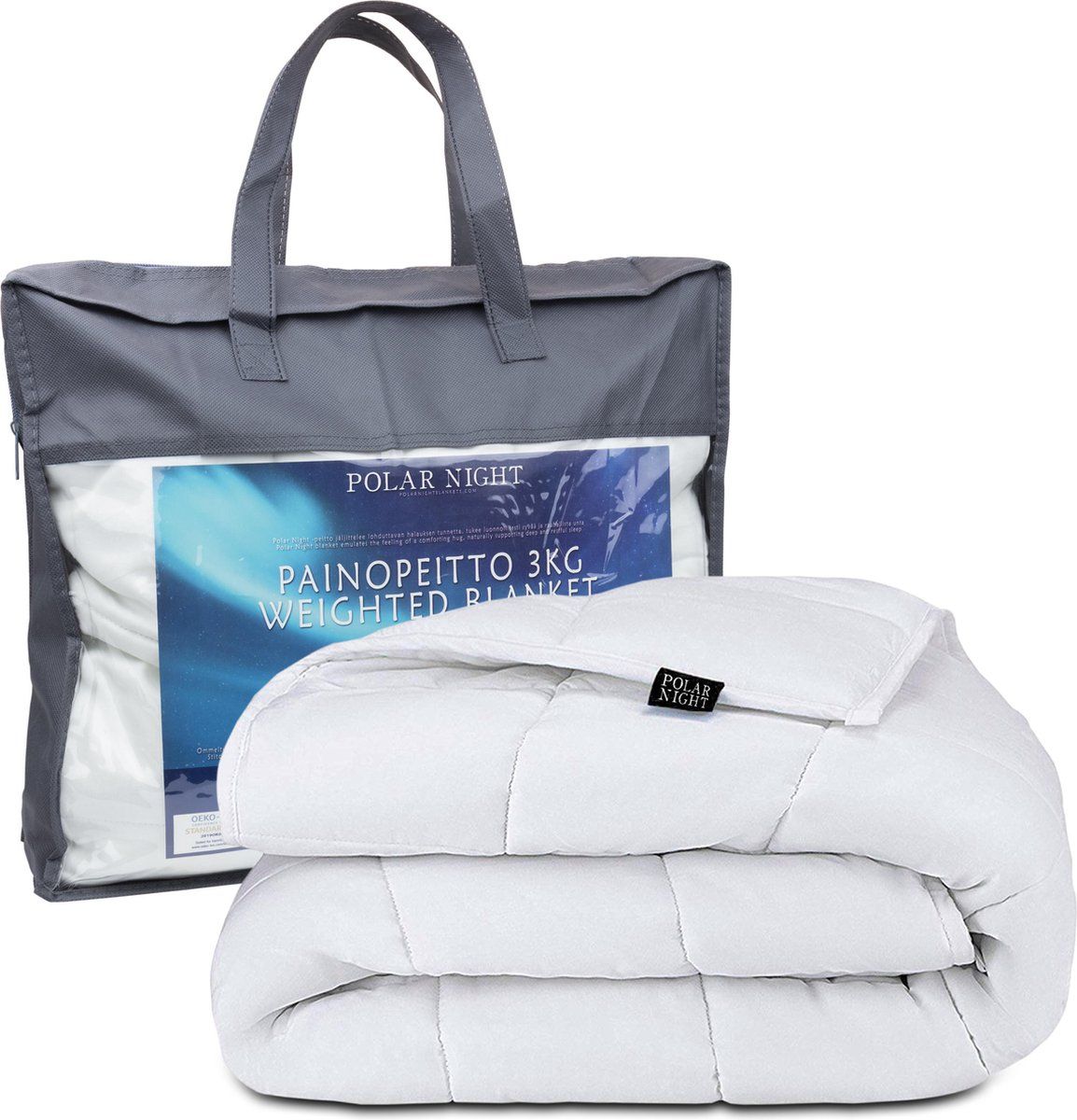 De Polar Night verzwaringsdeken weegt 5kg en is gemaakt volgens de hoogste Scandinavische kwaliteitsnormen. Deze verzwaarde deken is ontworpen om je slaapkwaliteit te verbeteren door een gevoel van geborgenheid te creëren. Door het gewicht geeft de deken druk op je lichaam, wat hetzelfde effect simuleert als een rustgevende knuffel en helpt bij het verminderen of vermijden van rusteloosheid en stress. Deze deken, geïntroduceerd in 2022, is gemaakt van ademende materialen en bevat hypoallergene, niet-toxische korrels. Het is dus veilig en comfortabel om onder te slapen. Als je op zoek bent naar betere en diepere slaap, kan deze verzwaarde deken de rustgevende oplossing zijn.