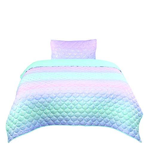 Tadpoles Mermetqltt Dekbedset voor meisjes, zeemeerminnenpatroon, voor tweepersoonsbed, glinsterend, metallic