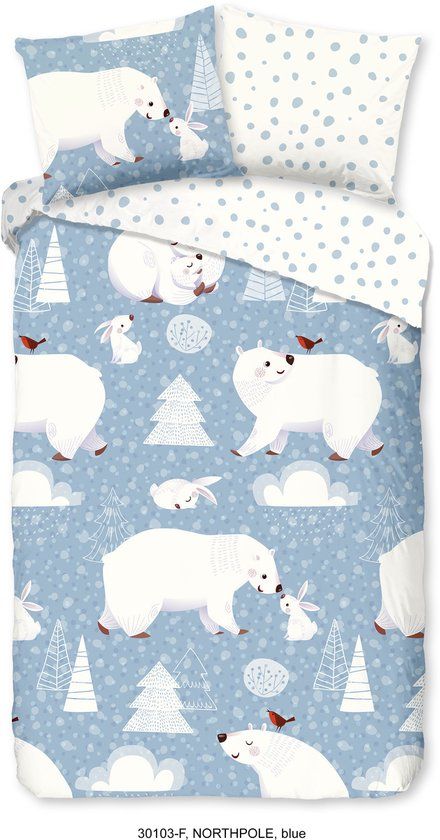 Good Morning Kinderdekbedovertrek "ijsberen" - Blauw - 140x220 cm - Katoen Flanel