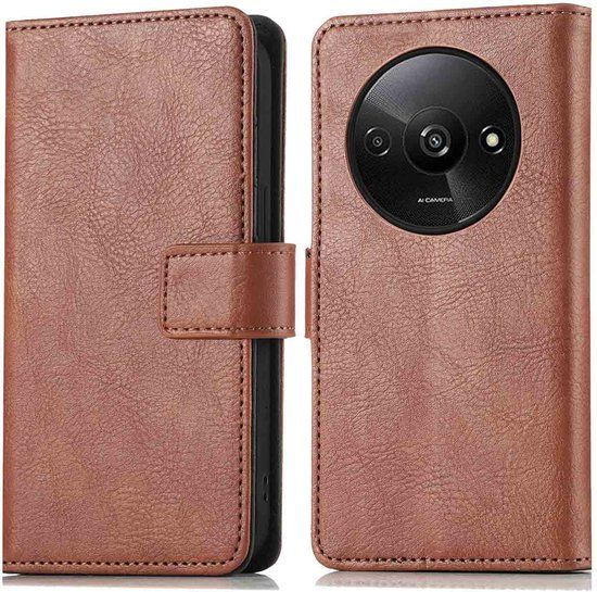iMoshion Hoesje Xiaomi Redmi A3 - Book Case - Bruin - Met Pasjeshouder - Hoezen voor mobiele telefoons