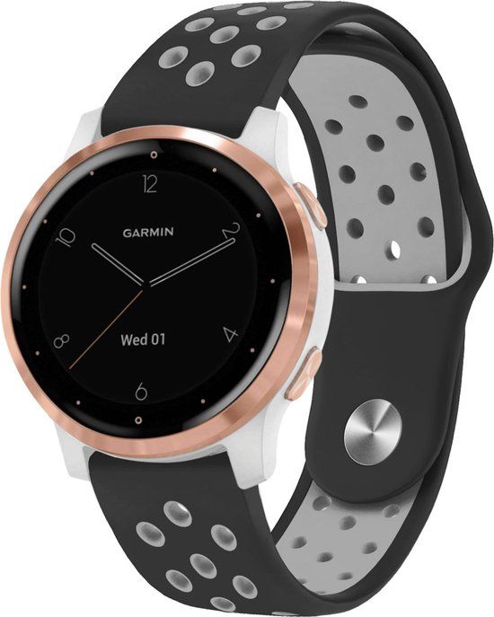 iMoshion Siliconen sport bandje 18 mm - Zwart/Grijs - Geschikt voor Garmin Vivoactive 4s / 3s, Venu 2s, Vivomove 3s, Fossil Gen 6 / 5e