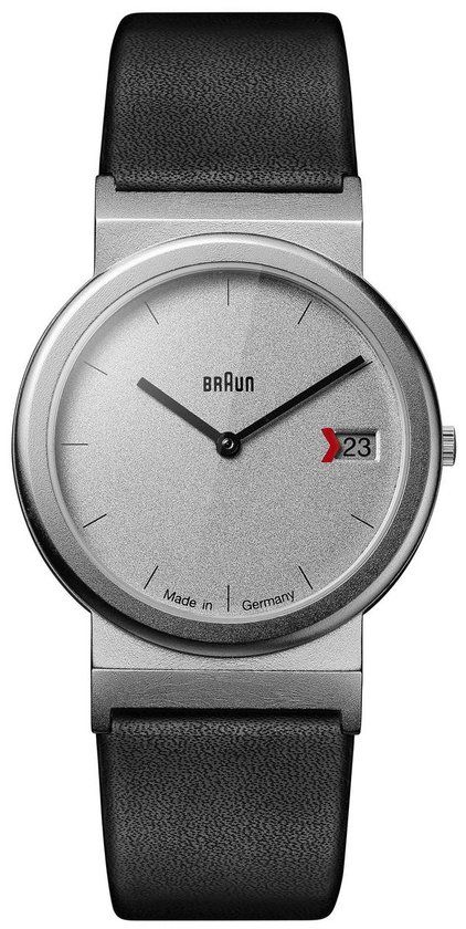Braun unisex horloge. Rvs horlogekast en Kalfsleer band. Quartz uurwerk. Gesp sluiting. Waterproef 30 meter.