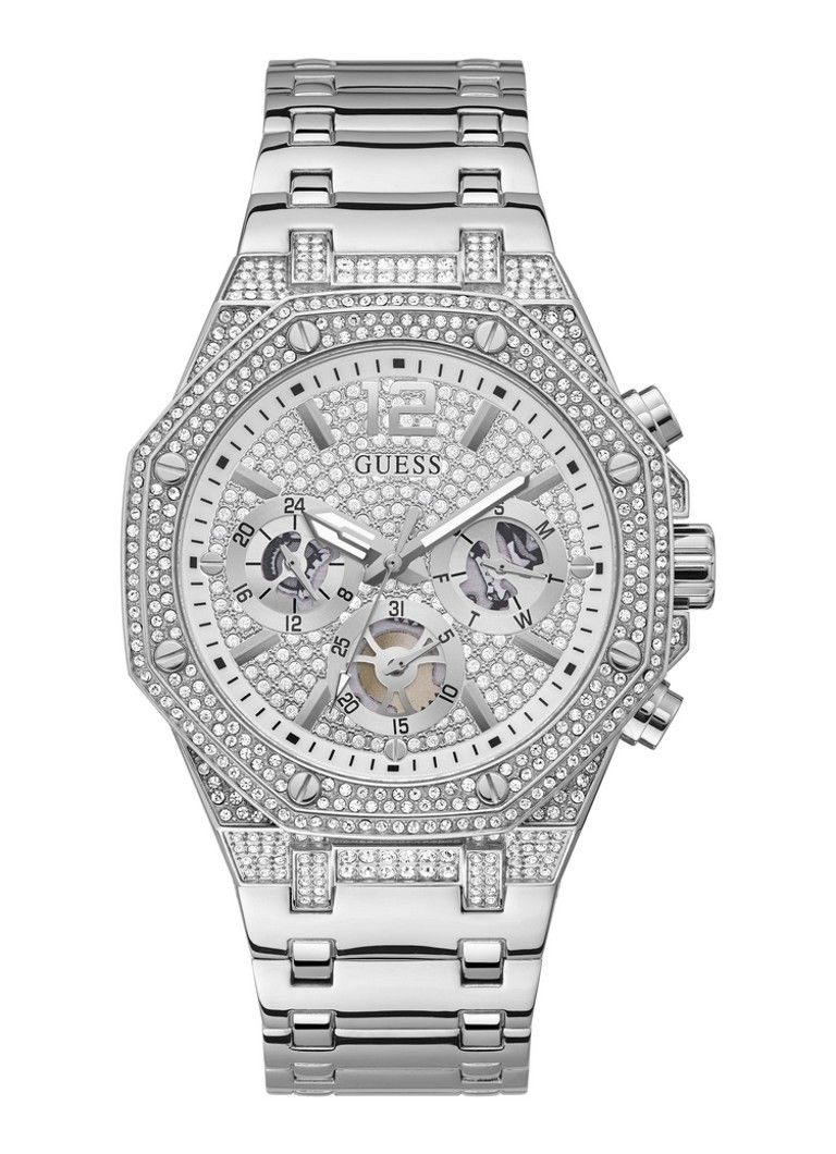 De Momentum is een waar sieraad om je pols. Dit nieuwe GUESS zilverkleurige heren horloge schittert van alle kanten! De kast heeft een diameter van 40 mm en is een echte eye-catcher. Het horloge is tot 5 ATM waterdicht. Dit model heeft een zilverkleurige chronolook wijzerplaat met dag, datum en 24 uursaanduiding met briljant geslepen zirconia stenen voor een extra sparkle. Een horloge en sieraad voor de mode bewuste man! Model: GW0419G1.
