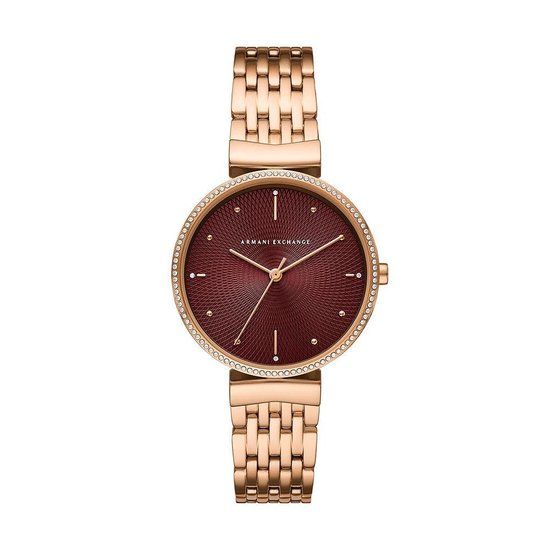 De roségouden kleur van dit dameshorloge van Armani Exchange maakt dit tot een subtiel accessoire. De bordeauxrode wijzerplaat geeft het horloge een luxe uitstraling. Van deze AX5912 voor dames heb je jarenlang plezier!