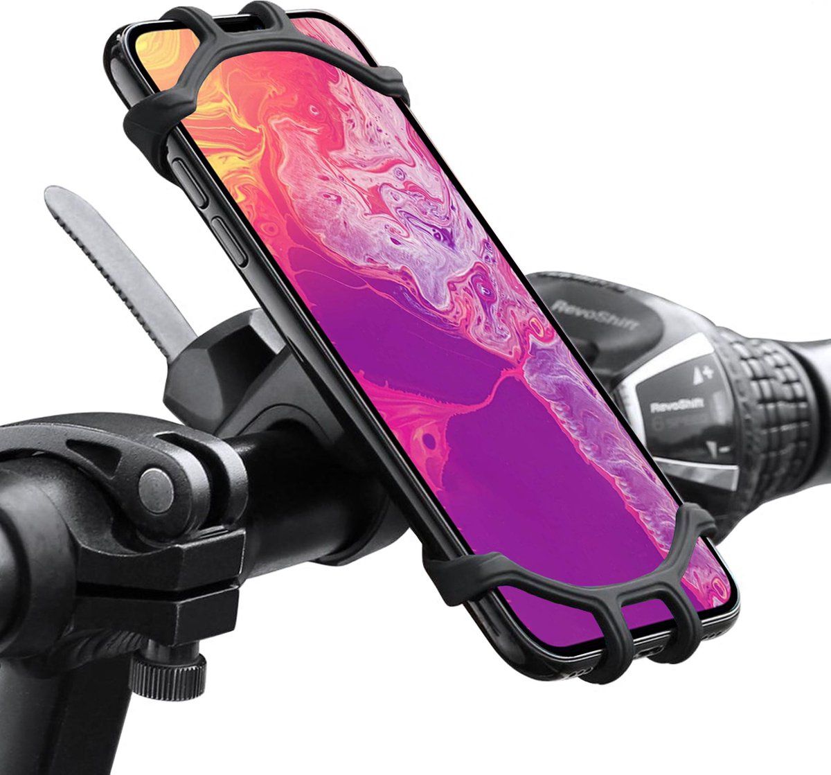 BASEY. Universele Telefoonhouder Fiets Scooter En Buggy - Fiets Telefoonhouder Siliconen - 360 Graden Draaibaar - Zwart - Houders voor mobielen