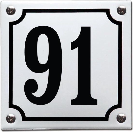 EmailleDesign® Emaille huisnummer wit/zwart nr. 91 - Huisnummers en -letters