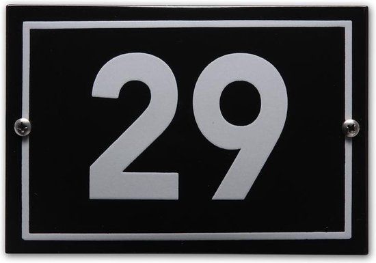 EmailleDesign® Huisnummer model Phil nr. 29 - Emaille - Zwart met grijs - 11 x 16 cm - Huisnummers en -letters