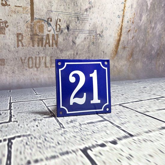 EmailleDesign® Emaille huisnummer blauw/wit nr. 21 - Huisnummers en -letters