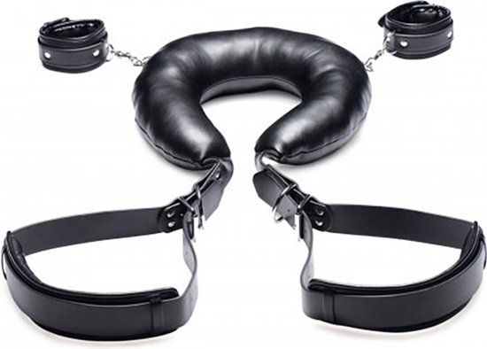 Geniet van een opwindend bondagespel met deze luxe positieriem set! Deze set heeft een comfortabele neksteun, handboeien en dijbeen riemen om de knieën omhoog te houden. De set is volledig verstelbaar en gemaakt van stevig vegan materiaal. Maak het extra