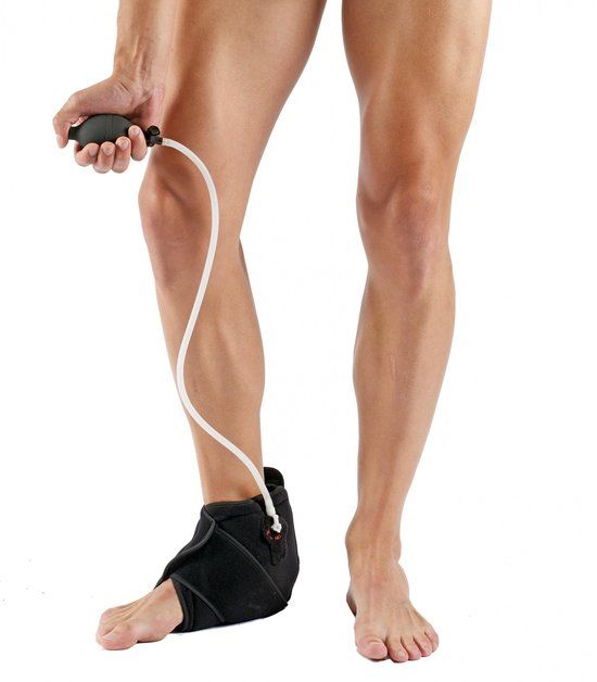 Het hele gewricht wordt rondom gekoeld met een prettige (regelbare)druk. Te gebruiken bij een blessure, na een operatie, bij artrose, bij een irritatie (ontsteking) of een zwelling. Door de anatomische vorm wordt het gehele enkelgewricht rondom effectief gekoeld met een prettige druk. Zo is de druk zelf te reguleren met behulp van een handpompje.