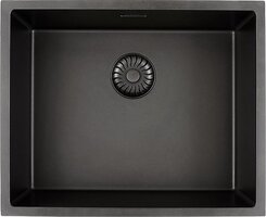 Caressi CAGRPP50BK-TU Enkele Spoelbak - 50 x 40 cm - Zwart - Graniet - Design - Inbouwgootstenen