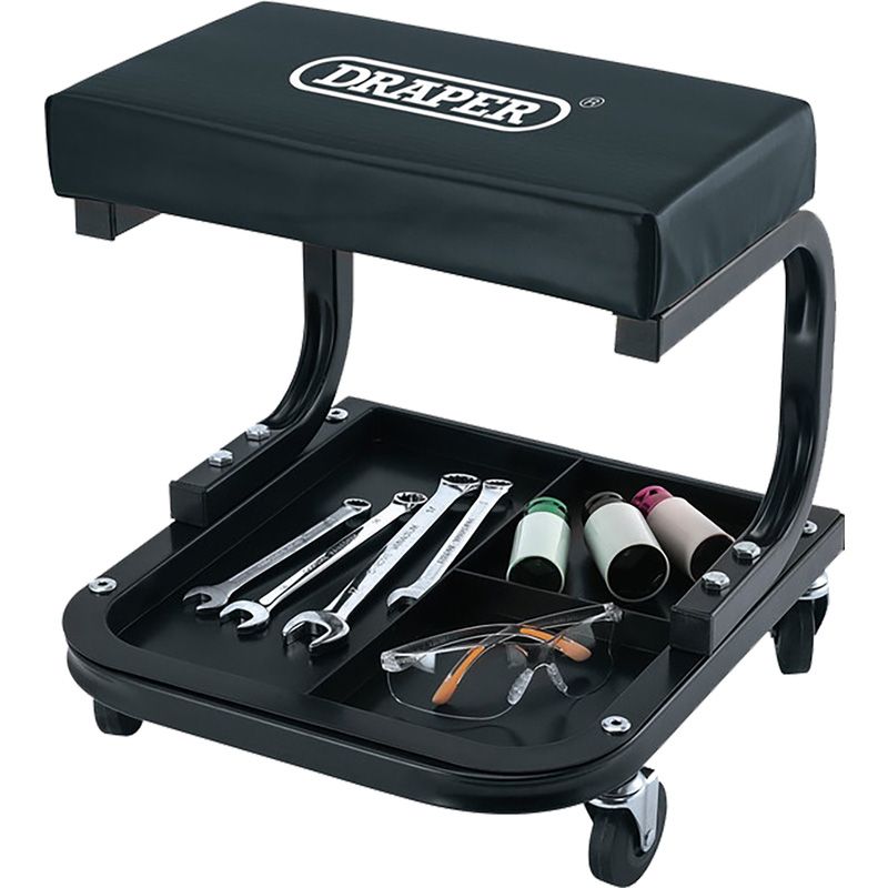 * Comfortabele werkstoel * Bekleding van oliebestendig vinyl, eenvoudig reinigbaar * Wendbaar (60 mm zwenkwielen) * Ingebouwd opbergvak in de stoelbasis biedt ruimte voor gereedschap en toebehoren * Maximaal draagvermogen van 100 kg * Zitvlak lengte: 360 mm * Zitvak breedte: 210 mm * Hoogte: 416 mm