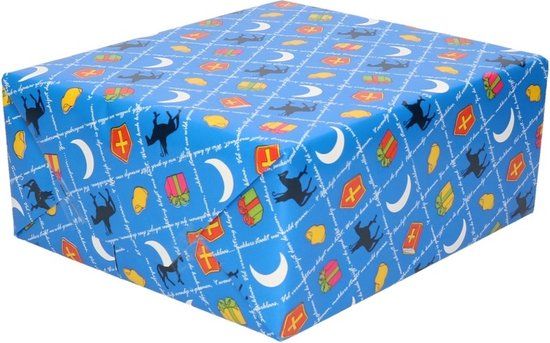 Bellatio Decorations 25x Sinterklaas kadopapier print blauw 250 x 70 cm op rol - cadeaupapier/inpakpapier - Sint en Piet - Inpakpapier