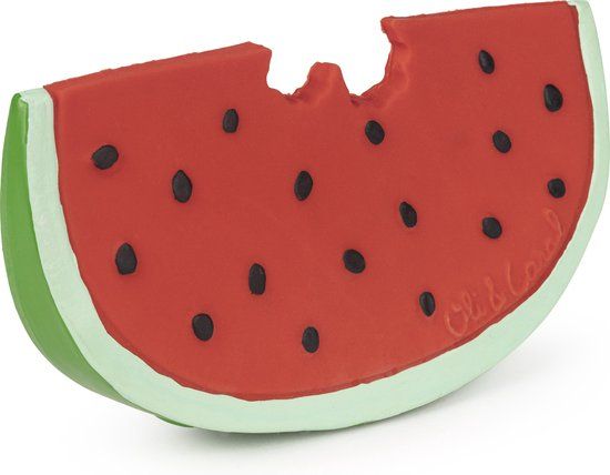 Oli & Carol Wally de Watermeloen - Bijtspeeltje - Watermeloen groen met rood vruchtvlees