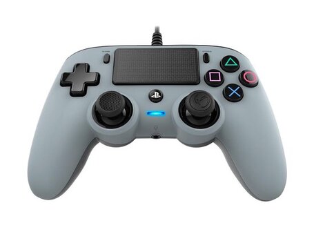 Wil je lekker kunnen gamen zonder dat je je zorgen hoeft te maken over een lege batterij? Dan is deze officieel gelicenseerde Wired Compact Controller van Nacon voor je PlayStation 4 een prima keuze! Je sluit de grijze, bedrade controller in een mum van tijd op je PS4 aan en voor je het weet zit je helemaal midden in je game.\n\nDe controller is niet alleen goedkoper dan andere officieel gelicenseerde controllers voor de PlayStation 4, maar ook nog eens compacter. Zo ligt de grijze controller door zijn ergonomische vorm lekker in de hand tijdens het gamen en zorgen de verschillende functionaliteiten voor optimaal gameplezier. Ook voor jongere gamers is de Wired Compact Controller van Nacon een ideale controller om het gamen onder de knie te krijgen.\n\nCompacte en aantrekkelijk geprijsde PS4 controller\nDe Wired Compact Controller van Nacon is misschien kleiner van formaat, maar z’n functionaliteiten zijn dat zeker niet! De controller heeft een touchpad, een 3,5mm stereo-headsetaansluiting en trilmotoren, waardoor je optimaal in je game zit. Wordt het echt spannend tijdens het spelen, dan zijn zweethanden met deze Nacon PS4 controller geen enkel probleem; de soft touch afwerking zorgt ervoor dat de controller niet uit je handen glibbert. Het snoer van maar liefst 3 meter zorgt ervoor dat je tijdens het gamen alle vrijheid hebt die je je maar wensen kan.\n\nWired Compact Controller met vertrouwde knoppen\nDe Wired Compact Controller voor de PS4 van Nacon beschikt over alle knoppen die je als gamer zo gewend bent op je PlayStation 4. De analoge sticks, Share-, Options- en PS-knoppen: ze zijn allemaal aanwezig op deze stoere PlayStation 4 controller van Nacon.\n\nKies je liever voor een PS4 controller met een draadje in plaats van een draadloos exemplaar en wil je niet te veel betalen voor jouw exemplaar? Dan is deze grijze, officieel gelicenseerde Wired Compact Controller van Nacon met een zeer goede prijs/kwaliteitverhouding precies wat jij zoekt.