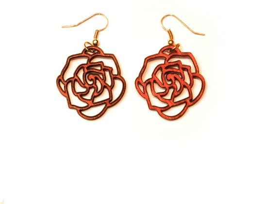 Hoentjen Creatie Houten oorbellen - Roos mahonie klein