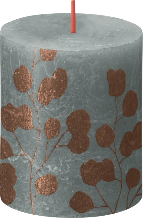 Bolsius Rustiek printed stompkaars 80/68 Eucalyptus green eucalyptus