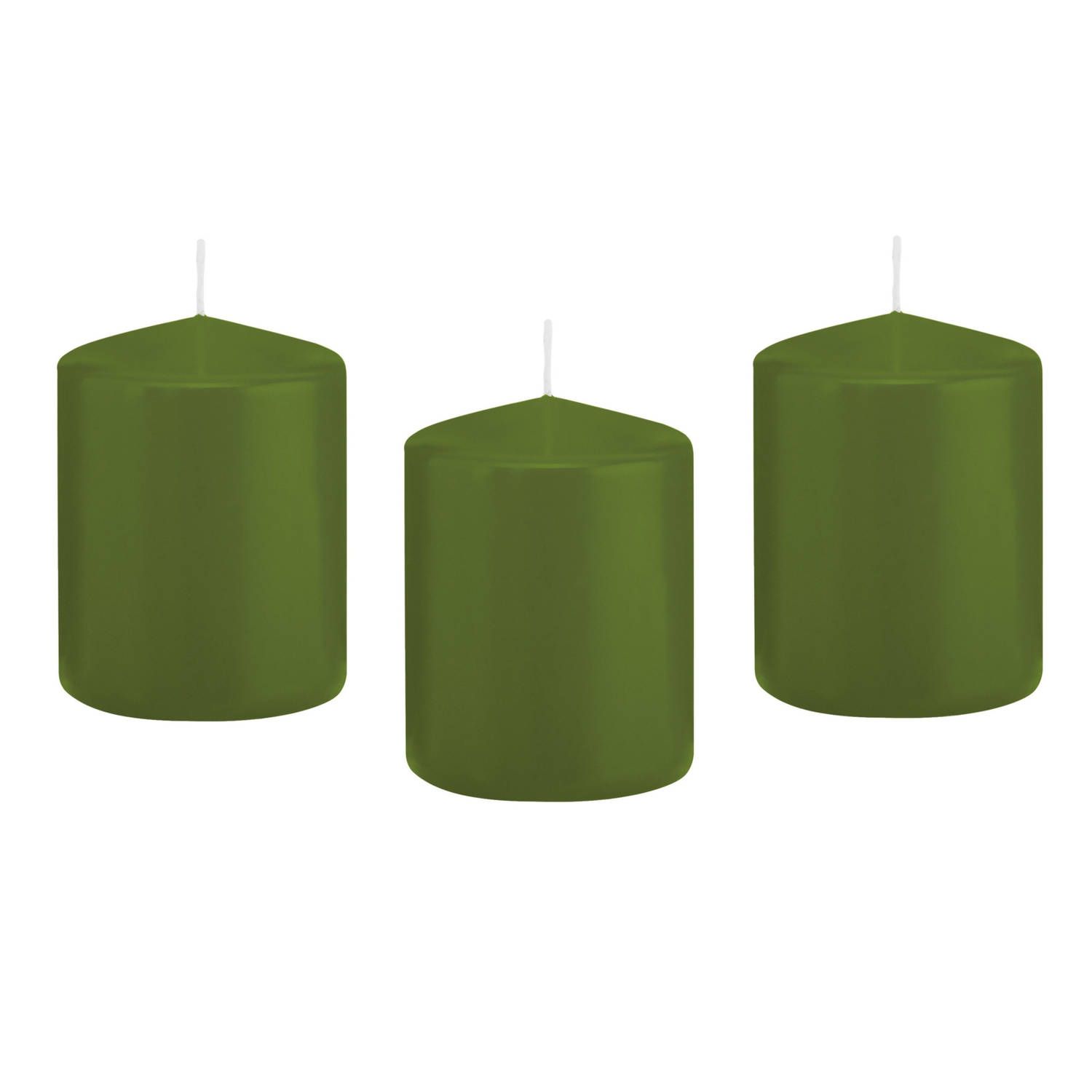 Trend Candles 8x Olijfgroene cilinderkaarsen/stompkaarsen 6 x 8 cm - Geurloos - Kaarsen