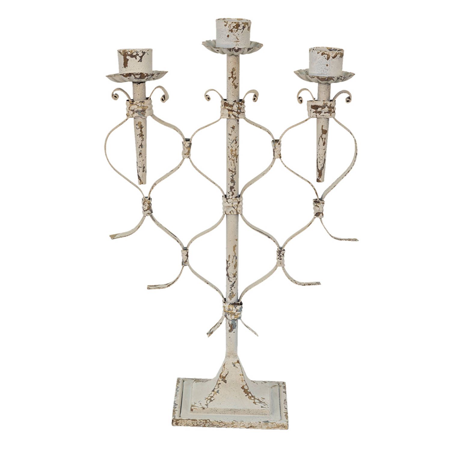 Clayre & Eef Kandelaar - 28x12x42 cm - Wit Metaal - Wit - 8717459918870 - Kaarsen