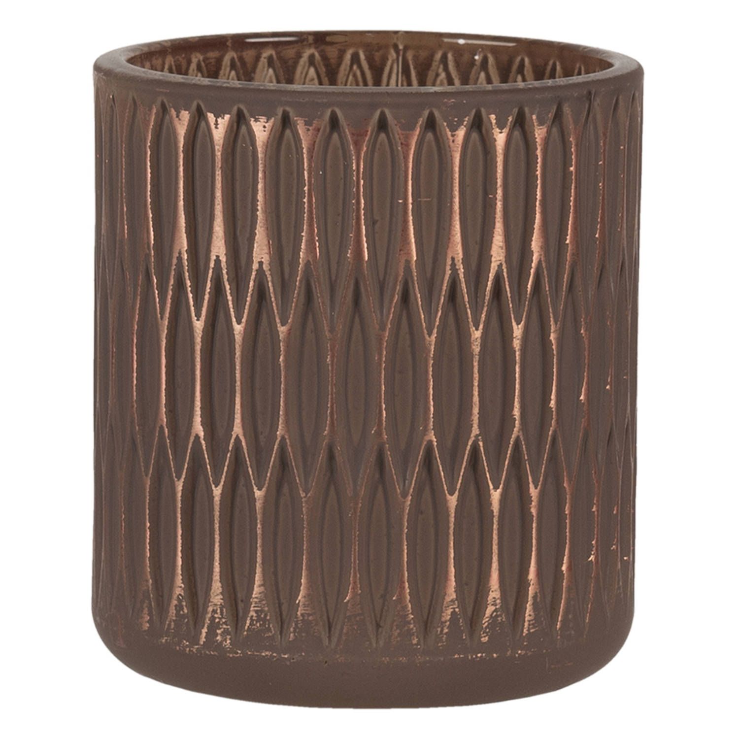Clayre & Eef Glazen Theelichthouder ø 8*9 cm - Bruin