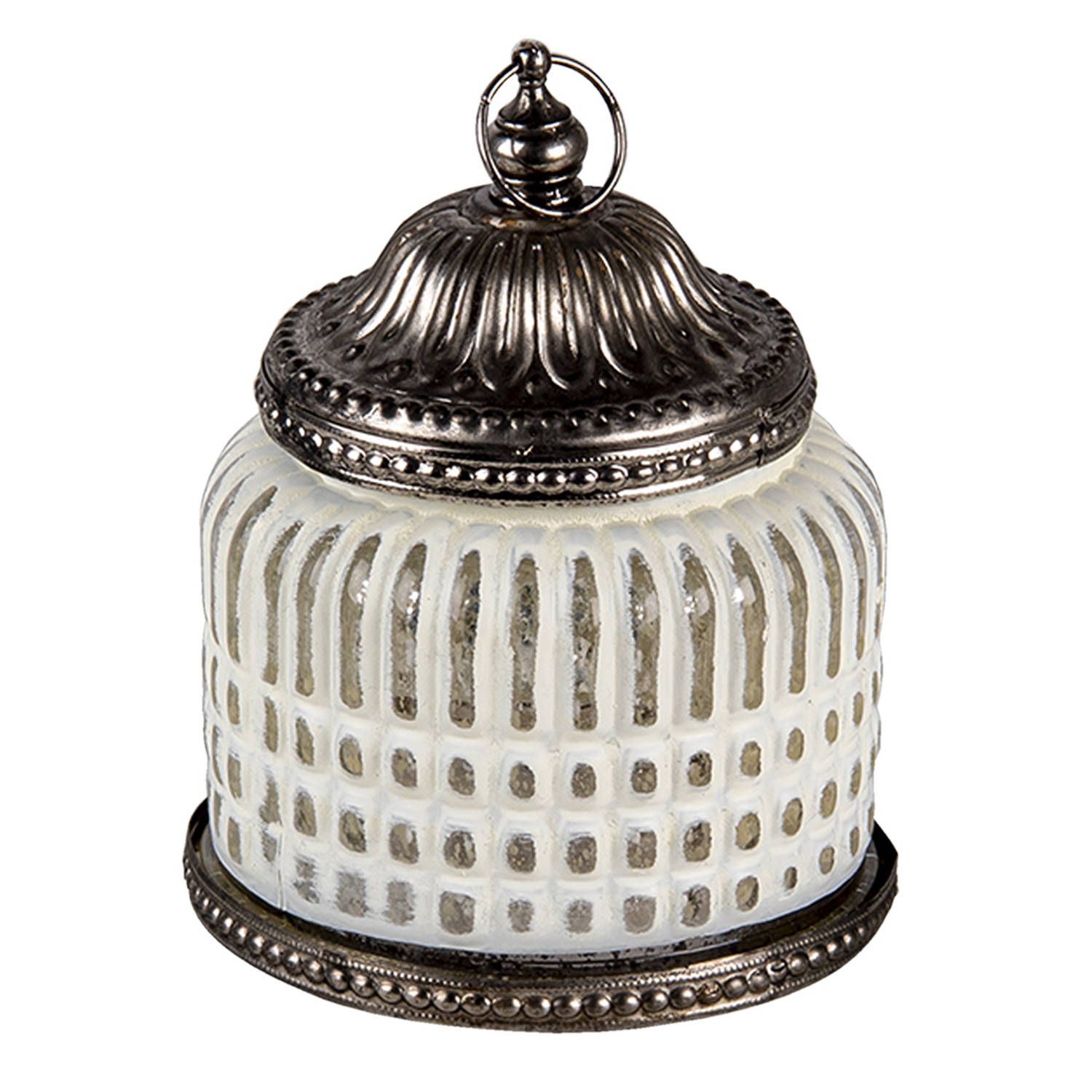 Clayre & Eef Glazen Theelichthouder - ø 9*13 cm - Wit Glas, Metaal Rond - Met Led Kaars