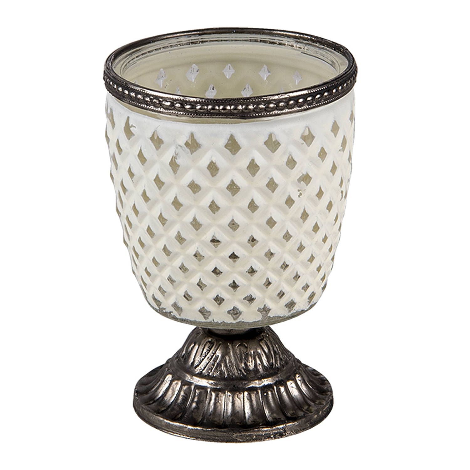 Clayre & Eef Glazen Theelichthouder - ø 9*13 cm - Wit Glas / Metaal - Rond - Kaarsen
