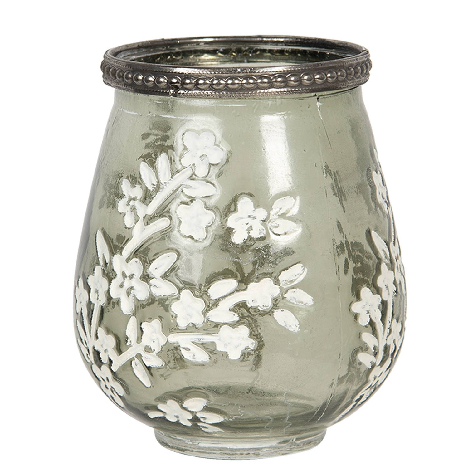Clayre & Eef Glazen Theelichthouder - ø 9*11 cm - Groen